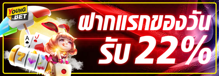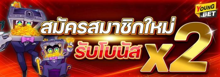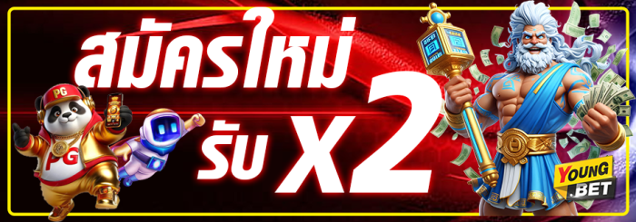 เมื่อคุณสมัครสมาชิกใหม่กับ youngbet และทำการเติมเงินขั้นต่ำ 300 บาท คุณจะได้รับโบนัสพิเศษ 100% ของยอดเติมเงิน ตัวอย่างเช่น หากคุณเติมเงิน 1,000 บาท คุณจะได้รับโบนัสเพิ่มอีก 1,000 บาท ทำให้มียอดเงินในบัญชีรวม 2,000 บาททันที นี่เป็นโอกาสดีที่จะเพิ่มทุนในการเดิมพันของคุณ