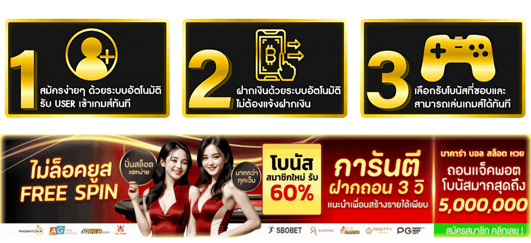 ตอบ : โบนัสต้อนรับสมาชิกใหม่ 100% โปรโมชั่นคืนยอดเสีย เครดิตฟรี แจกเครดิตวันเกิด และกิจกรรมแจกรางวัลพิเศษตามเทศกาล